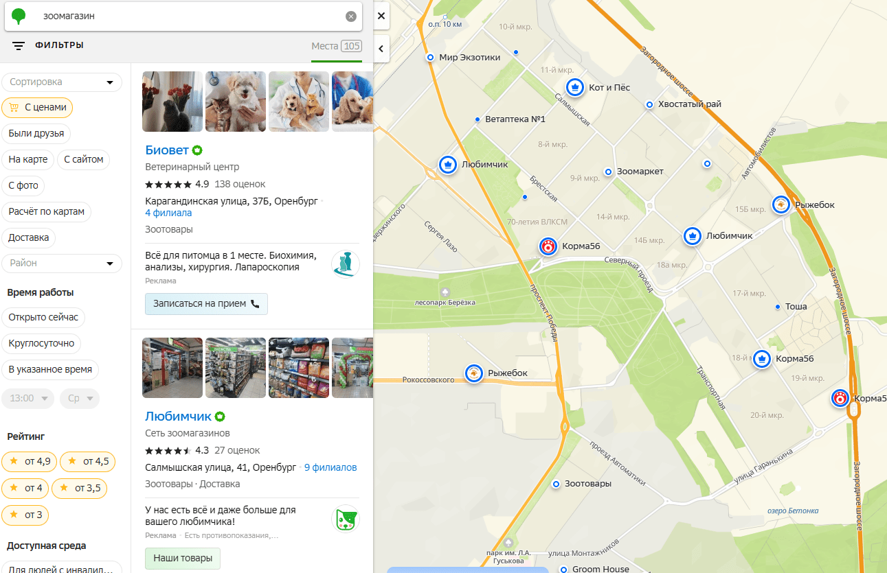 Другие агрегаторы и каталоги — 2GIS, Flamp, Zoon и подобные площадки. Карточка здесь расширяет охват аудитории, особенно если пользователи ищут не через поисковики, а через специализированные сервисы.