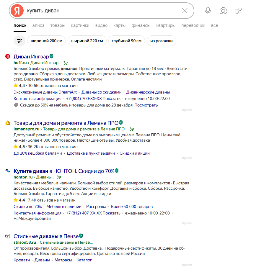 чисто коммерческие (купить диван; заказать SEO; цена на настройку рекламы);