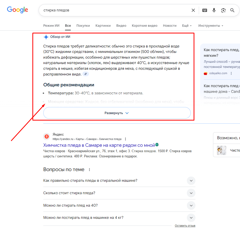| Быстрые ответы ИИ (AI Overviews в Google и нейроответы в Яндексе) появляются не по всем запросам, а по строго определённым типам интента. В 2026 году логика стала ещё жёстче: ИИ «забирает» те запросы, где пользователь хочет что-то понять, а не выбрать продавца. |